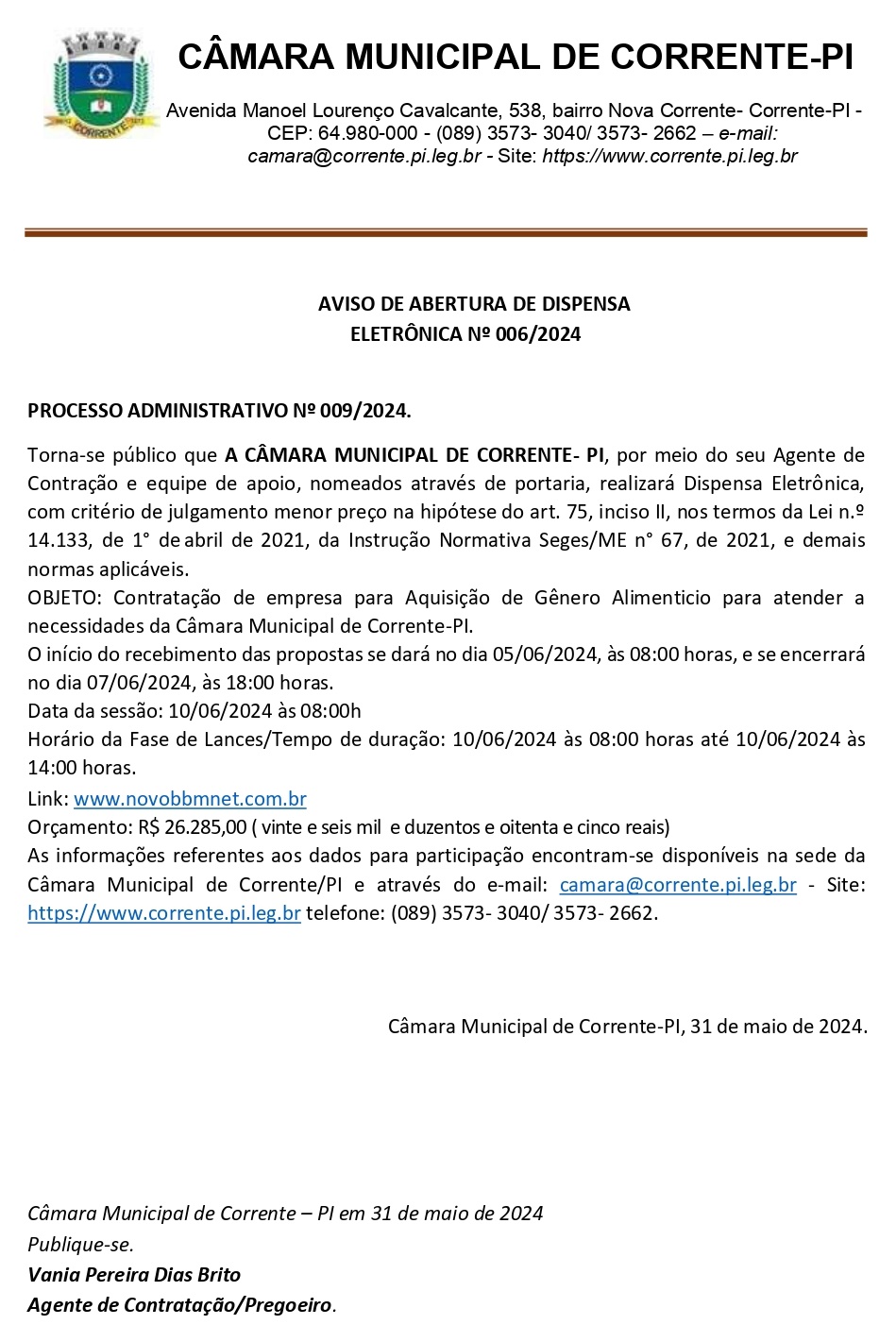 Câmara Municipal de Corrente- PI