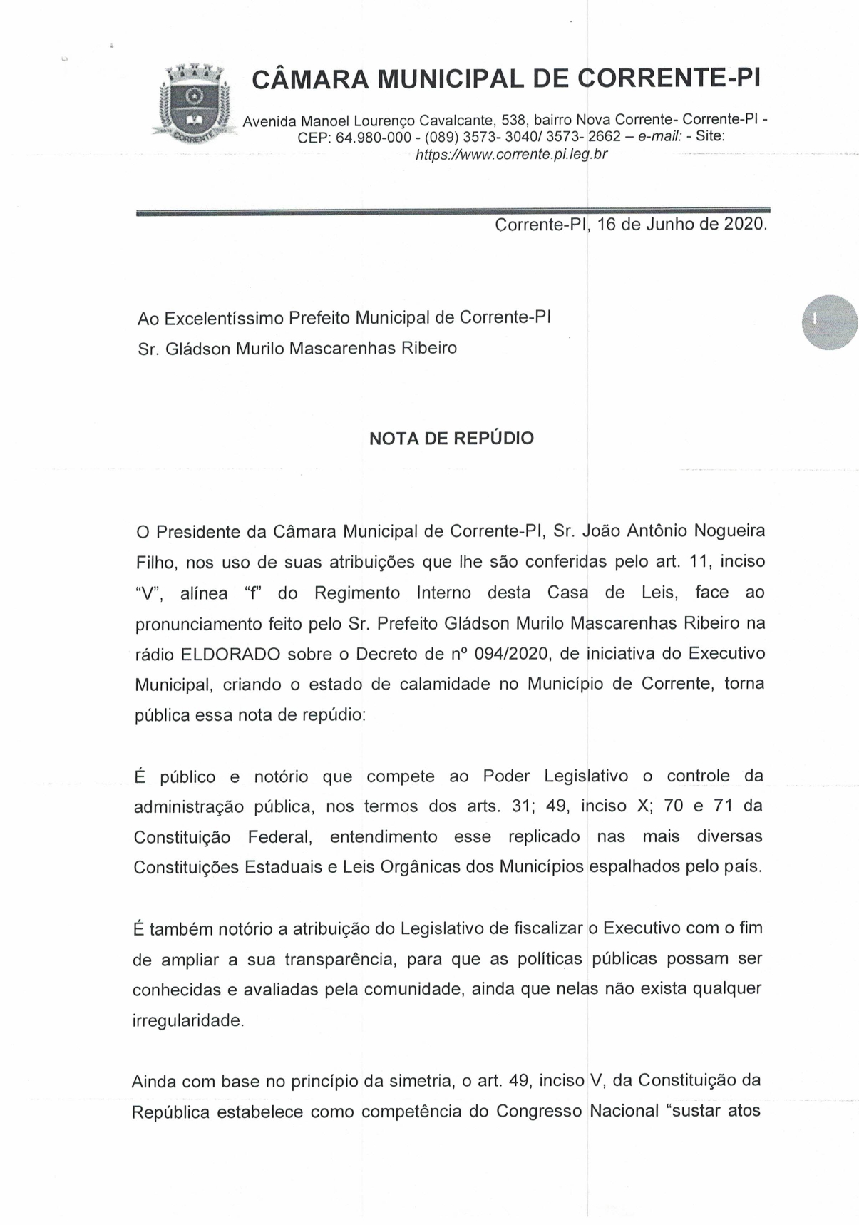 Câmara Municipal de Corrente- PI